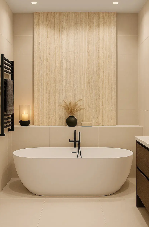 Breng warmte en elegantie in je interieur met Travertin Beige. Dit paneel combineert een rustige, natuurlijke steenlook met moderne luxe, ideaal voor minimalistische woonstijlen, nieuwbouwwoningen of trendy ruimtes. Waterbestendig, lichtgewicht en makkelijk te plaatsen, voor een snelle maar stijlvolle upgrade van je muur.